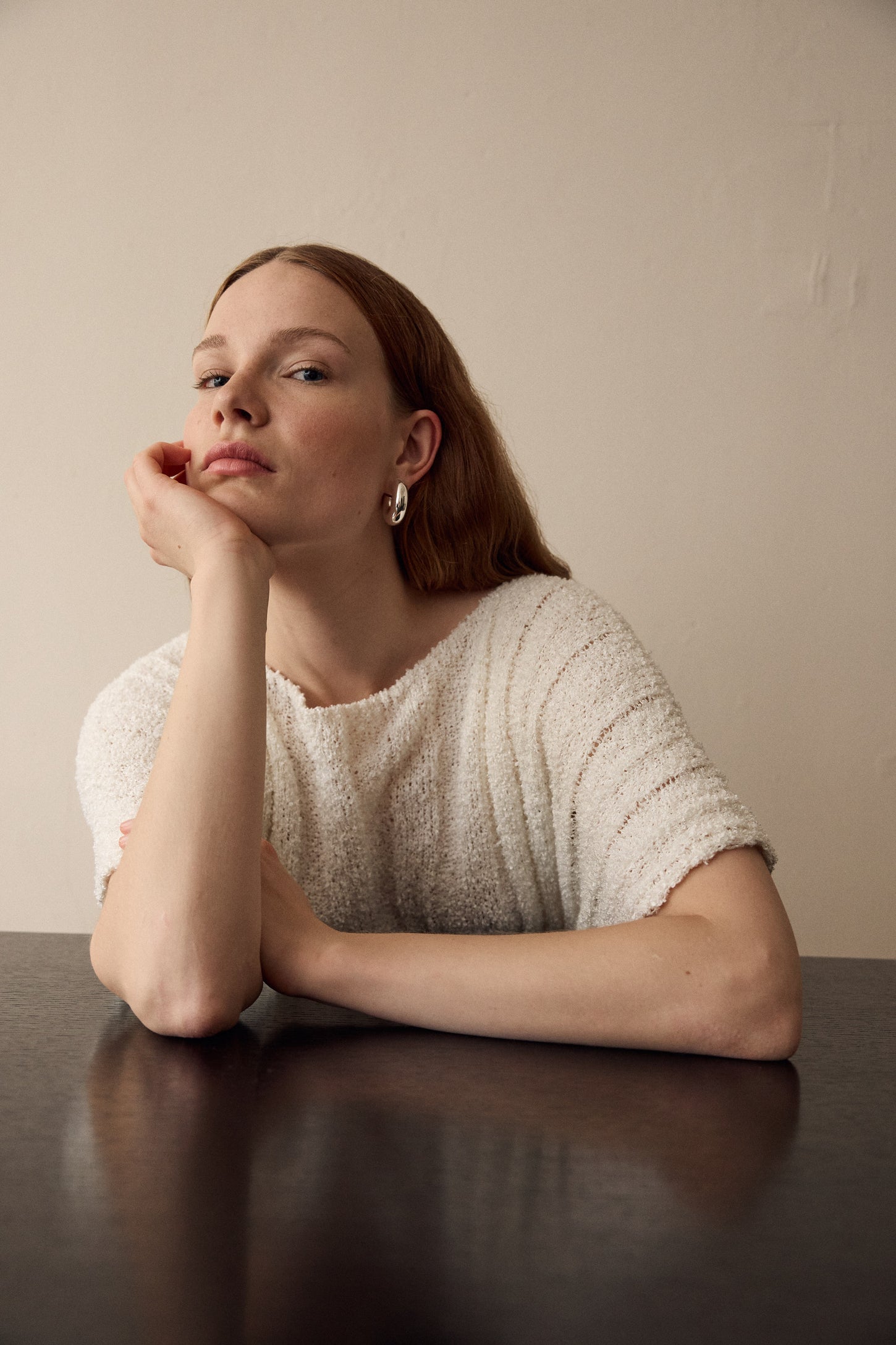 Produced in limited series and made to order. This allows us to react quickly and avoid overproduction. Did you know knitwear almost completely gets on without excess yarn? We collect the scraps and make scrunchies from them.