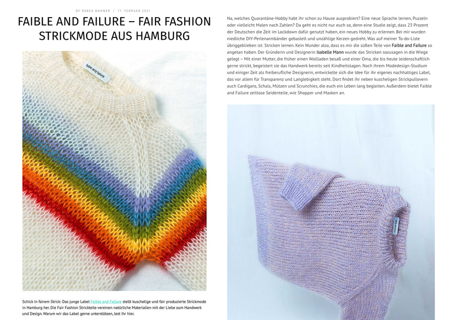 1.1 Diese Allgemeinen Geschäftsbedingungen (nachfolgend "AGB") der Isabelle Mann, handelnd unter "faible and failure" (nachfolgend "Verkäufer"), gelten für alle Verträge über die Lieferung von Waren, die ein Verbraucher oder Unternehmer (nachfolgend „Kunde“) mit dem Verkäufer hinsichtlich der vom Verkäufer in seinem Online-Shop dargestellten Waren abschließt. Hiermit wird der Einbeziehung von eigenen Bedingungen des Kunden widersprochen, es sei denn, es ist etwas anderes vereinbart.